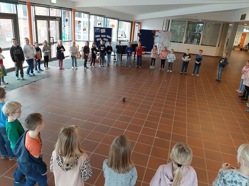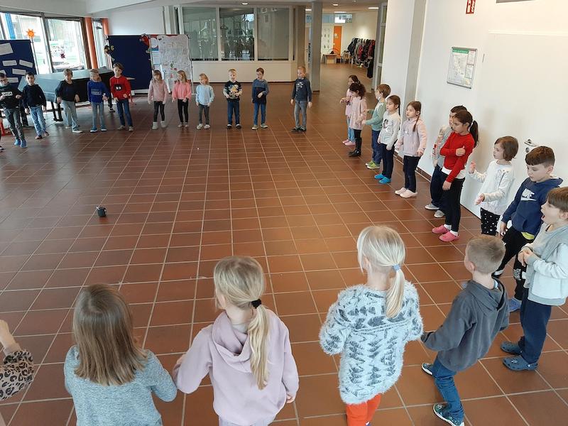 "Zum Jahresstart haben die Kinder der Klasser 1 im Musikunterricht die Jahresuhr von Rolf Zuckowski gehört, gesungen und dazu getanzt.