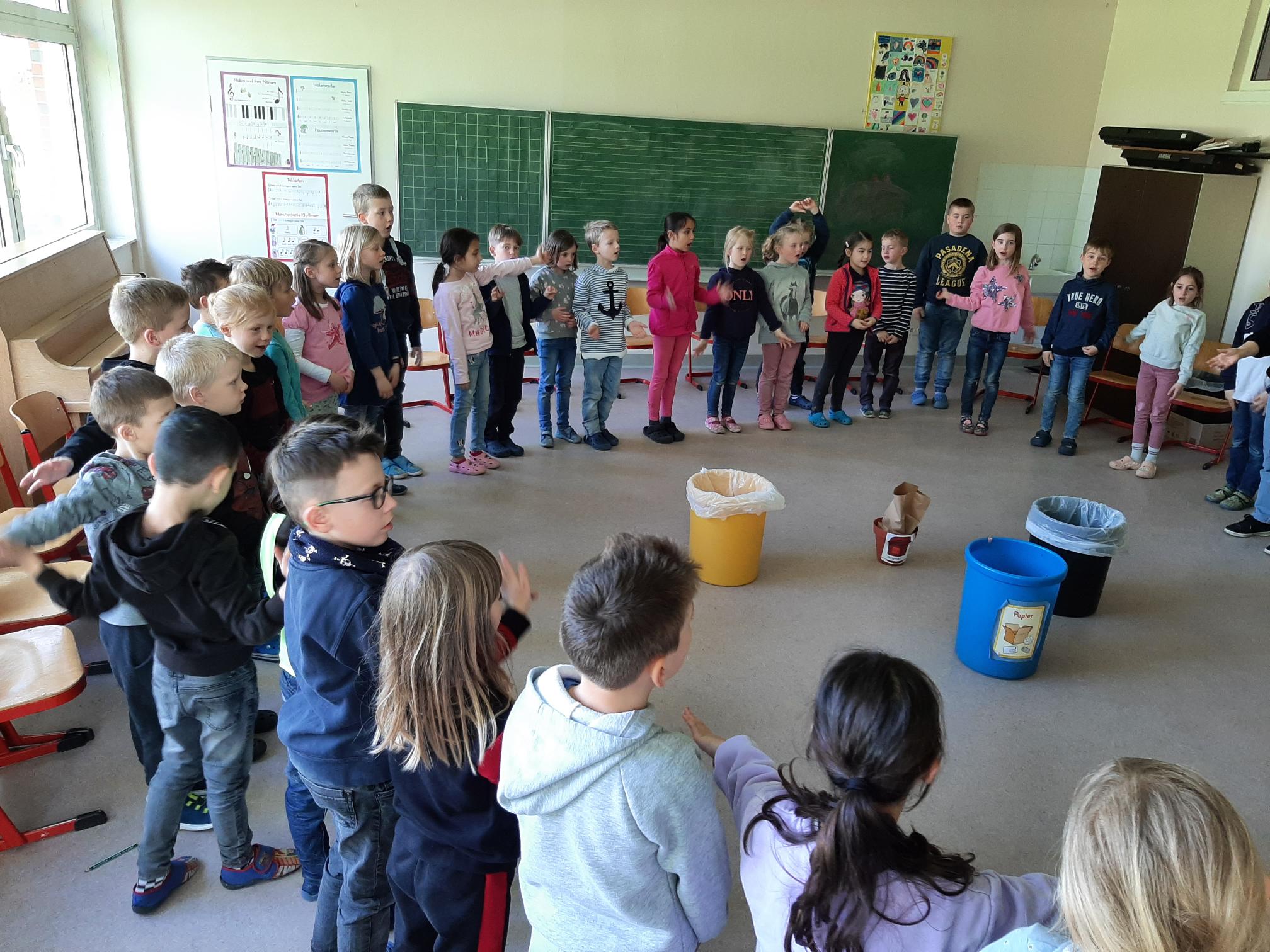 Der 1. Jahrgang hat sich im Sachunterricht mit dem Thema Müll beschäftigt. Fächerübergreifend haben wir im Musikunterricht einen Müll-Song gelernt und im Kunstunterricht mit Müll spannende Objekte kreiert. Die Fotos zeigen einen Einblick in die letzten Wochen.